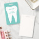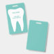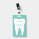 Crachás de nome de consultório dentário com logotipo de dente molar branco. Clínica de odontologia profissional e suprimentos para consultório dentário. Personalize com o nome da (empresa). Branco e azul turquesa ou cores personalizadas. Inclui um clipe ou cordão prático.