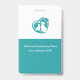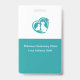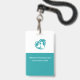 Crachás de nome para funcionários de consultório com tema veterinário médico em um design editável econômico. Apresentados com cordão e design de dupla face em azul turquesa e branco com um logotipo de cachorro e gato que você pode usar ou substituir.