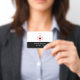 Saúde editável com orçamento e tema médico crachá de nome de funcionário projetado com um coração e um emblema cruzado e texto que você pode personalizar on-line com seu nome comercial e modelo de membro do funcionarios. Disponível em grande quantidade e em uma impressão quando você precisar.