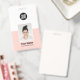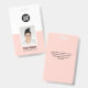 Personalize facilmente este Crachá de ID de Segurança com Nome de Funcionário com Foto, nome do funcionário, profissão e logotipo da empresa. Um design simples de negócios em cor rosa pastel feminino e branco totalmente personalizável na frente e nas costas, fontes modernas e básicas sem serifa para uma aparência profissional e clara. Os crachás de identificação estão disponíveis com cordão, clipe de metal ou retrátil. Sem pedido mínimo.