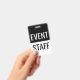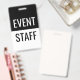 crachás clássicos de ID de funcionarios de evento em preto-e-branco simples impressos em ambos os lados para eventos corporativos, concertos ou seminários disponíveis em grandes quantidades em um orçamento ou em pequenas quantidades para eventos menores.