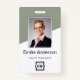 Create a stylish and modern impression with this professional ID badge design. The layout features a chic sage green and white diagonal color block for a contemporary visual flair that catches the eye. The clean typography and prominent photo placement ensure instant recognition, making this a perfect choice for a sophisticated corporate image.