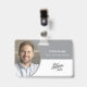 You can easily create a professional employee name badge tailored to your needs with options for a photo, name, title or profession, barcode or QR code. This creative design is available in a variety of approved print colors and can be fully customized on both the front and back with multiple font options. With no minimum order requirement, you can order exactly what you need—whether it’s one badge or many. Please delete any unused templates. If you need assistance, we’re always happy to help.