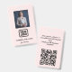 Secure your workspace with high-impact style using this "Modern Pink" minimalist photo and QR code staff name badge. Custom-designed for a sophisticated, contemporary aesthetic, this premium ID card features a soft, elegant palette paired with bold typography that highlights your company logo and digital employee data. More than just an ID, it serves as a soulful, artisanal tool that turns every scan, trade show, or office visit into a high-quality, personalized experience for your team. Simply click "Personalize" to upload your unique logo, staff photo, and specific QR code, ensuring you leave a polished, professional, and joyful impression as you scale your small business operations.
