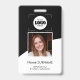 Personalized employee id card - identification modern minimalist simple white and black badge with your custom company logo, photo, name, title, QR code or barcode, and other details - if needed. +++++++++++++ Easy to personalize with your info on both sides! +++++++++++++++ Suitable for corporate employees, managers, executives, accountants, business office staff, warehouses, retail and logistic companies, special event personnel. +++++++++ Please note that the background color, fonts, and sizes of text can be changed. You can upload a scanning QR code or bar code or add any other text on the backside.