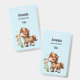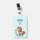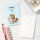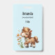 Nome de etiqueta com uma ilustração adorável. Um pequeno pônei marrom comendo margaridas felizes.
