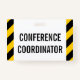 Características deste design simples do crachá a mensagem da "COORDENADOR CONFERÊNCIA". Igualmente caracteriza listras de advertência coloridas pretas e amarelas. [~Z0000286]