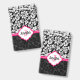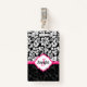 Crachá Damasco preto branco e cor-de-rosa monograma