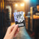 Crachá de show personalizado de Acesso Total VIP com modelo para adicionar seu código de barras de show. Substitua pelo nome do seu show, local e data. Use esta foto ou substitua pela sua.