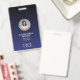 Crachá de identificação de funcionário de empresa simples e elegante que pode ser facilmente personalizado com a foto do funcionário, nome, cargo ou posição, logotipo da empresa, detalhes comerciais e código QR ou código de barras. O design elegante apresenta uma tipografia minimalista moderna.