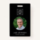 Crachá de funcionarios de funcionários negros moderno com foto, código QR, logotipo da empresa e nome e cargo do funcionário. Você pode personalizá-lo facilmente com seus detalhes comerciais.