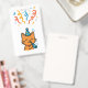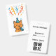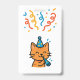 Crachá de convite do Ano Novo Vertical 2026 com um gato cartoon giro vestindo um chapéu de festa com confete colorido. Perfeito para festas, eventos escolares ou reuniões familiares, esta design divertida e festiva adiciona um toque alegre a qualquer celebração.