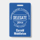 Um crachá para um delegado da Conferência. Altere o texto para seus detalhes. Crachá do delegado de conferência. Crachá delegado oficial de uma Assembleia ou Convenção. Texto branco sobre fundo azul.