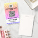 Crachá de eventos de conferência amarelo, rosa e roxo do Starburst com lugar para o código QR do seu evento, logotipo, designação do participante e detalhes do nível de acesso.