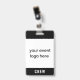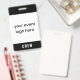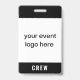 Personalize este simples crachá moderno de funcionarios da equipe de eventos voluntários com o seu logotipo. Se o seu logótipo for quadrado, preencherá inteiramente o espaço branco. Se o seu logotipo não estiver quadrado, aparecerá em fundo preto. A parte traseira do crachá pode ser personalizada com o nome do evento e a data ou ano, ou você pode excluir ambos para ter um todo preto de volta. Este crachá de funcionarios de tripulações minimalista é ideal para eventos especiais, festivais, concertos e convenções.