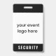 Personalize este simples crachá de segurança de eventos moderno com o seu logotipo. Se o seu logótipo for quadrado, preencherá inteiramente o espaço branco. Se o seu logotipo não estiver quadrado, aparecerá em fundo preto. A parte traseira do crachá pode ser personalizada com o nome do evento e a data ou ano, ou você pode excluir ambos para ter um todo preto de volta. Este crachá de funcionarios minimalista é ideal para funcionários de segurança temporários em eventos especiais, festivais, concertos e convenções. Observe que, em vez de um logotipo, você pode carregar uma foto da pessoa de segurança e, no verso, substituir o nome do evento pelo nome da pessoa e/ou pela empresa de segurança contratada para o evento.
