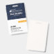 Um crachá moderno para eventos de conferências de negócios. O design mostra o nome da organização que executa o evento e o nome do evento na metade superior. A metade inferior do crachá exibe o nome, a função comercial e de evento da pessoa que está participando do evento. Este crachá de eventos comerciais é ideal para seminários, fóruns anuais, reuniões globais, conferências ou shows de comércio. Cor: azul de Oxford