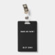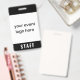 Personalize este simples crachá de funcionarios de eventos moderno com seu logotipo. Se o seu logótipo for quadrado, preencherá inteiramente o espaço branco. Se o seu logotipo não estiver quadrado, aparecerá em fundo preto. A parte traseira do crachá pode ser personalizada com o nome do evento e a data ou ano, ou você pode excluir ambos para ter um todo preto de volta. Este crachá de funcionarios minimalista é ideal para funcionários em eventos especiais, festivais, concertos e convenções.
