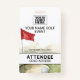 Crachá de eventos Golf com lugar para o código QR do seu evento, logotipo, designação do participante e detalhes do nível de acesso.