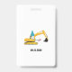 Um crachá de passagem de festa de aniversário temático de caminhão de construção fofo com um caminhão escavadeira festejando. Personalize o favor de festa de aniversário da escavadeira com seus detalhes. Ideal para uma festa de aniversário de meninos e meninas!