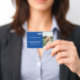 Crachá de negócios corporativos foto de funcionário ou fornecedor. Adicione foto ao primeiro, e adicione o nome da empresa e o nome da pessoa, grau, se aplicável, e seu cargo. No verso você pode adicionar seu endereço e um código de barras, se desejar. Se não, basta excluir essas partes.