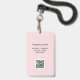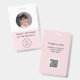 Eleve a imagem profissional da sua empresa com um simples Crachá de ID com Logo Rosa para Funcionários com foto do funcionário e Código QR no verso. A combinação de cores rosa suave e cinza torna-o ótimo para um visual limpo e moderno. Personalize-o com foto do funcionário, logotipo da empresa, código QR, detalhes comerciais e títulos de cargo para um visual sofisticado.