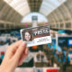 Deixe que outros reconheçam instantaneamente seus funcionários da mídia ou imprensa em eventos com este crachá de identificação personalizado. Inclua informações como o nome da emissora, nome do funcionário, informações de contato, logotipo, etc. Também disponível em configuração horizontal.
