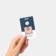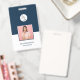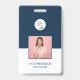 Crachá de nome facilmente personalizável, basta adicionar suas fotos e digitar seus detalhes para criar um design de negócios simples nas cores branco e azul marinho para uma aparência profissional limpa.