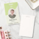 Este crachá é uma forma moderna e profissional de identificar os trabalhadores no local de trabalho. Ele foi projetado com uma paleta de cores verde e cinza e apresenta um número de identificação exclusivo e uma foto para fácil identificação.