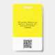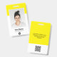 Personalize facilmente este Crachá de Funcionário Personalizado com Foto, Código de Barras Qr e logotipo empresarial. Um design empresarial simples em cores amarelo e branco totalmente personalizável na frente e verso, tamanhos, fontes básicas sans-serif e modernas e um visual profissional e claro. Disponível com cordão, clipe metálico ou retrátil. Sem pedido mínimo.