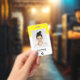 Crachá de Funcionário Amarelo com Foto, Qr Code e