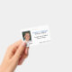 Crachá de funcionário branco personalizado, com espaço para foto no lado esquerdo da frente. Personalize todos os campos de texto com as informações necessárias e substitua a imagem pela sua.