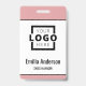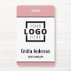 Personalize facilmente este crachá de nome de funcionário personalizado com o logotipo da sua empresa e código QR ou código de barras. Disponível com diferentes cores de fundo e acessórios. Sem quantidade mínima de pedido.
