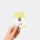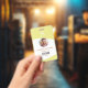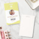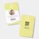Um crachá de identificação corporativa elegante e fácil de personalizar que inclui o nome do funcionário, cargo, logotipo da empresa, detalhes comerciais e QR ou código de barras.
