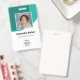 Personalize estes crachás de funcionário verticais azuis turquesa com uma foto do funcionário, logotipo da empresa, código de barras, id do funcionário e nome.