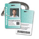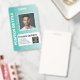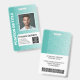 Padrão Tribal Aqua e Branco - Um design empresarial moderno que destaca os logotipos do seu escritório e o nome do funcionário. Este design de escritório moderno também inclui um número de identificação, data de validade e título de enfermeira ou outro.