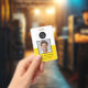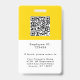 Um crachá de identificação profissional vibrante com foto do funcionário, nome e cargo na frente, juntamente com o logotipo da sua empresa. A parte de trás do crachá tem um modelo para o código QR do site da sua empresa e informações adicionais da empresa, conforme desejado. Todo o texto pode ser editado conforme preferir. O design ousado em amarelo mostarda com texto preto é atraente e profissional.