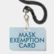 Só exiba este crachá se estiver legitimamente isento de vestir uma máscara ou outro rosto coberto de acordo com as leis e diretrizes locais. Vestir uma máscara onde e quando você for capaz ajuda a diminuir a propagação e salvar vidas.