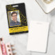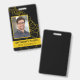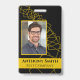 Crachá de ID de negócios preto e ouro para profissionais. Ideal para conferências ou novos funcionários e inclui imagem, nome do indivíduo e nome da empresa ou cargo. Há espaço para seu logotipo no canto superior direito, se desejar.