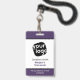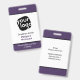 Este crachá de conferência elegante é perfeito para qualquer empresa que procure dar ao seu pessoal uma aparência individualizada com texto e cores personalizados. O design apresenta um fundo roxo, preto e branco que pode ser facilmente personalizado, também!