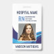 Personalize este crachá profissional de pessoal médico vertical com uma foto do funcionário, nome, nome do hospital ou do estabelecimento de saúde, abreviação do título, número de identificação do funcionário. Personalize-o com um código de barras na parte traseira, juntamente com informações de devolução, se necessário.