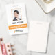 Um crachá moderno de ID de negócios que apresenta a foto, o nome, a ocupação de um membro funcionarios. O ID de funcionário moderno também inclui o nome comercial e o logotipo da empresa. A cor de qualquer elemento design deste crachá de ID de funcionarios pode ser personalizada. Cor: Laranja