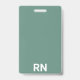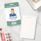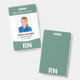Um crachá para enfermeiros, incluindo fotografia, nome, número de identificação e código de certificação. Este crachá é ideal para funcionarios médicos como enfermeiro registrado RN, enfermeiro Prático Licenciado LPN, enfermeiro NP ou Unidade de Cuidados Intensivos ICU. Este moderno crachá de identidade dos empregados também funcionará bem para funcionarios em lares de idosos e de enfermagem. Note que o código de certificação, como RN, LPN, PN ou ICU, também é mostrado na parte de trás do crachá. Cor: Verde