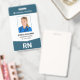 Um crachá para enfermeiros, incluindo fotografia, nome, número de identificação e código de certificação. Este crachá é ideal para funcionarios médicos como enfermeiro registrado RN, enfermeiro Prático Licenciado LPN, enfermeiro NP ou Unidade de Cuidados Intensivos ICU. Este moderno crachá de identidade dos empregados também funcionará bem para funcionarios em lares de idosos e de enfermagem. Note que o código de certificação, como RN, LPN, PN ou ICU, também é mostrado na parte de trás do crachá.