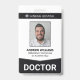 Um crachá moderno de identificação para hospitais, clínicas e instalações médicas. O modelo de ID do crachá de funcionarios médico inclui uma foto de ID do seu funcionário, o nome e profissão do funcionário, bem como um número de ID do crachá. O nome do grupo definido como "doutor" é exibido proeminentemente na parte inferior com uma seta como design apontando-a para fora. A parte traseira do crachá de ID de funcionarios do hospital é intencionalmente deixada vazio e aberta para que você adicione mais informações sobre o funcionário e o hospital ou clínica. Cor: Preto