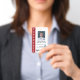 Foto de funcionário da empresa facilmente personalizável, crachá com código de bar e logotipo da empresa. O crachá está disponível com um clipe de metal, retrátil ou de ferro. Concebido por 1bizChoice (direitos reservados).