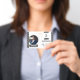 Crachá de identificação azul com foto do funcionár