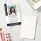 Crie uma aparência profissional com este crachá de identificação elegante. Um design sofisticado com um padrão de estrela geométrica em cores gradientes. Este modelo de dupla face é personalizado com sua foto, nome, informações comerciais e um código QR escaneável. Personalize o texto para adequar ao seu negócio. Perfeito para Notário Público, Agente de Assinatura de Empréstimo, Agente de Entrega de Confiança Notarial Certificado, CNTDA, Notário Móvel, Apostila, profissional jurídico ou outro funcionário de empresa. Cores de impressão: verde, preto, branco e dourado. Explore a coleção online para designs impressos correspondentes!