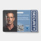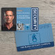 Design de crachá de identificação profissional para pessoal de segurança privada. Inclui foto, nome, cargo, número de identificação, código QR, data de validade e logotipo do crachá de segurança. Personalizável com o nome da sua empresa, logotipo e detalhes de contato—perfeito para guardas, oficiais e equipe de patrulha.