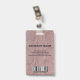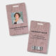 Cartão de identificação comercial moderno com código de barras sobre imitação de padrão de pele de cobra rosa. Informações adicionais podem ser adicionadas no verso deste crachá de identificação comercial